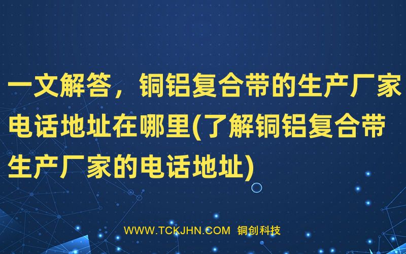銅鋁復合帶是一種具有優異性能的新材料,廣泛應用于航空航天、電力電氣、汽車制造等領域。如何找到銅鋁復合帶的生產廠家聯系方式和實際地址呢?本文為您介紹一些簡單的方法。