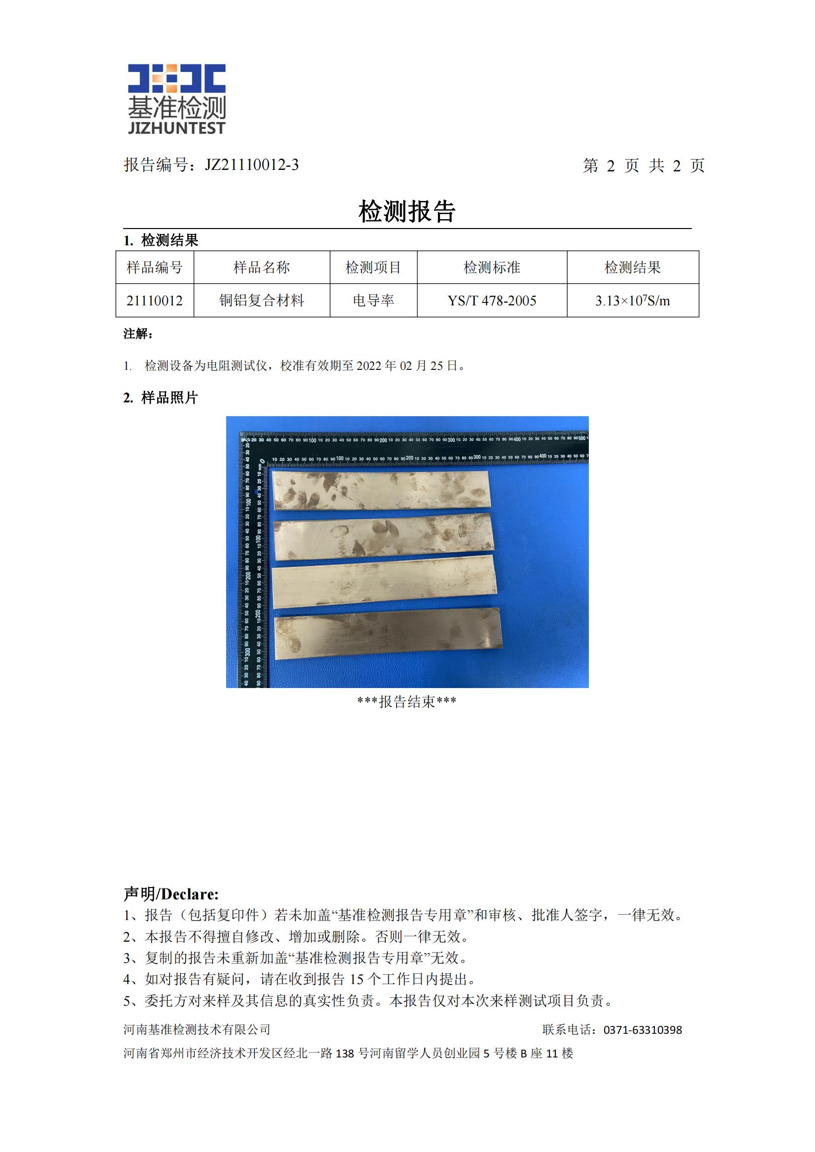 3、根據測試結果,白色面成分符合 GB/T 3190-2020 中對 1060 的牌號要求,黃色面成分樣品符合 GB/T 5231-2012 中對 T2 的牌號要求。