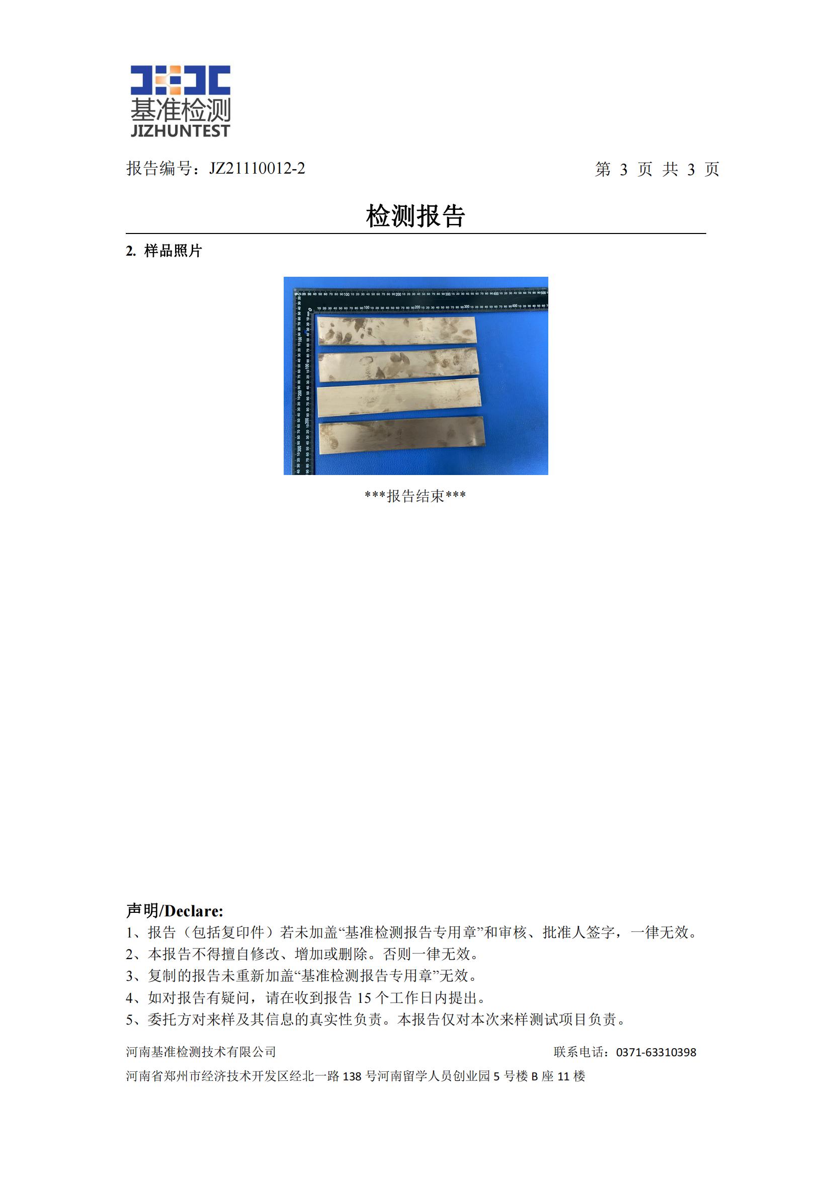 3、根據測試結果,白色面成分符合 GB/T 3190-2020 中對 1060 的牌號要求,黃色面成分樣品符合 GB/T 5231-2012 中對 T2 的牌號要求。